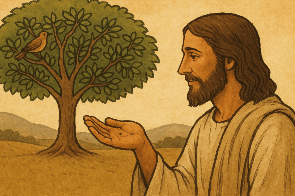 からし種は当時、最も小さい種の一つでしたが、やがて大きな木となり、鳥が枝に巣を作るほどに成長します。
