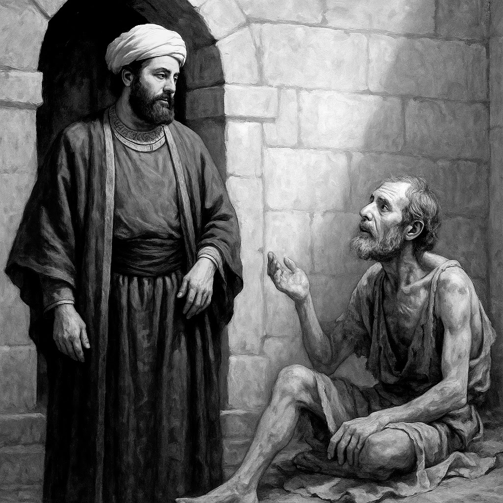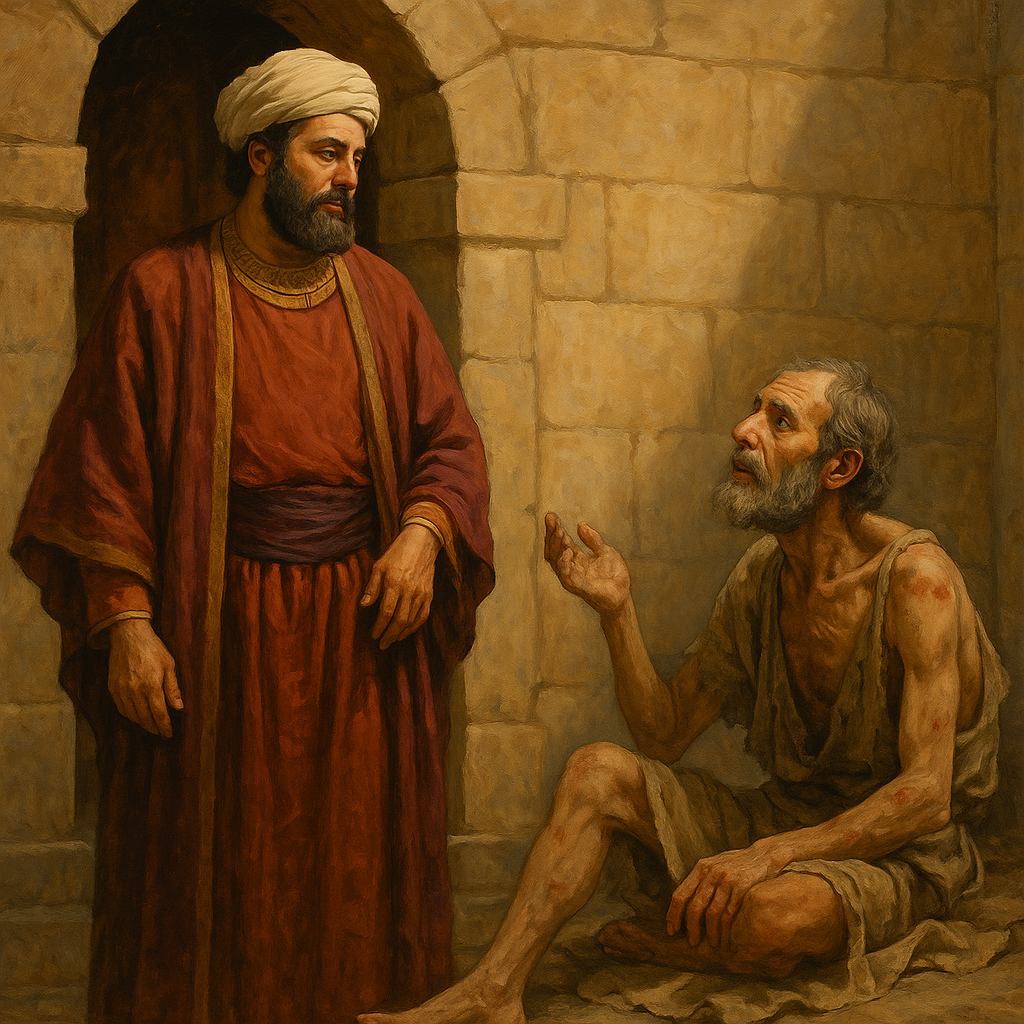 裕福な男はぜいたくな生活を送り、門前で苦しむ貧しいラザロを無視しました。