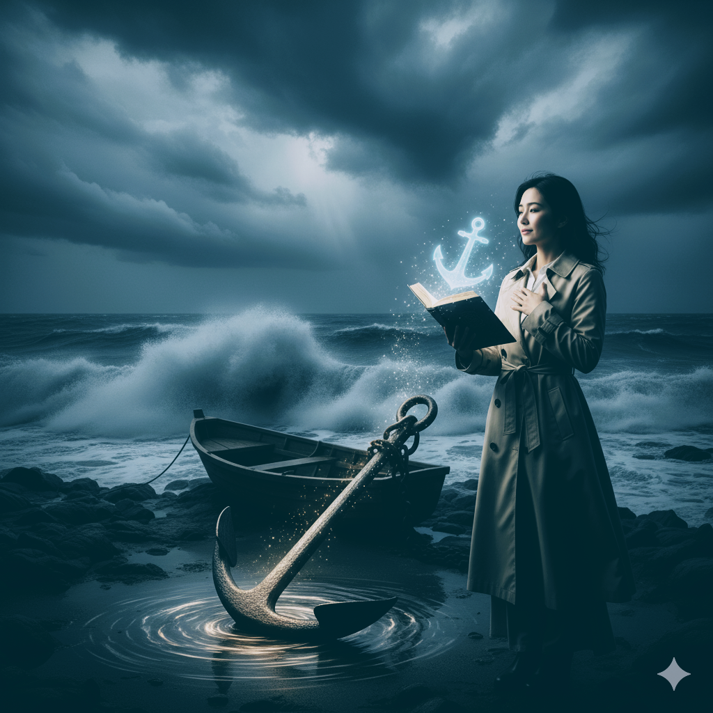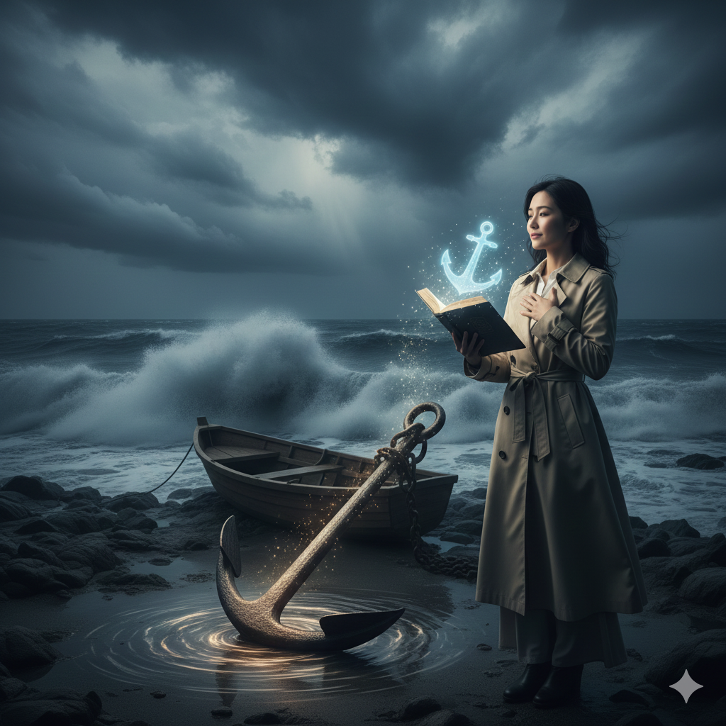 外の世界がどれほど荒れていても、舟がひっくり返らないためには、深く、重く、確かな「錨(いかり)」が必要です。