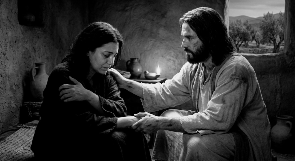 「もう一人で頑張らなくていい。あなたの罰も、痛みも、悲しみも、すべて私が引き受けたから。これからは私の平安の中で生きてほしい」