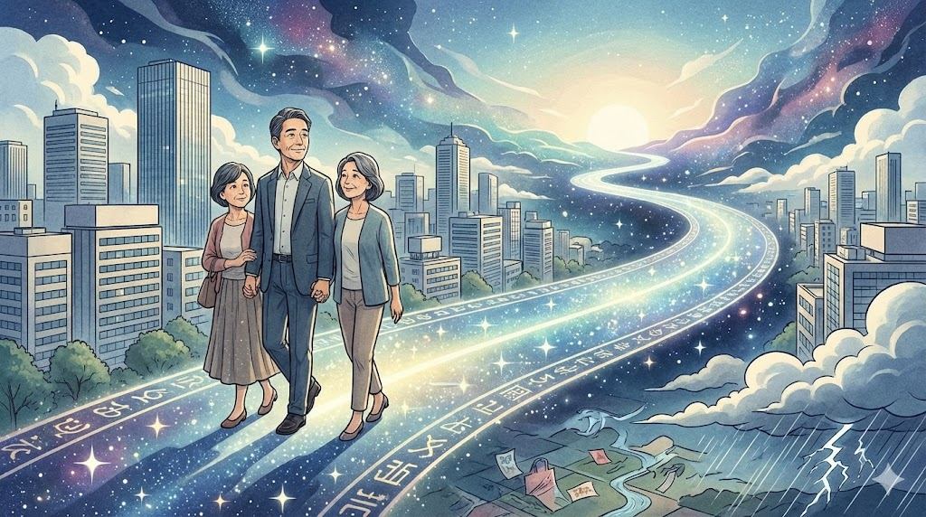 たとえ嵐が来ても、肉体の死を迎えても、決して失われることのない「神様との永遠の絆」が続く、確かな希望の道です。